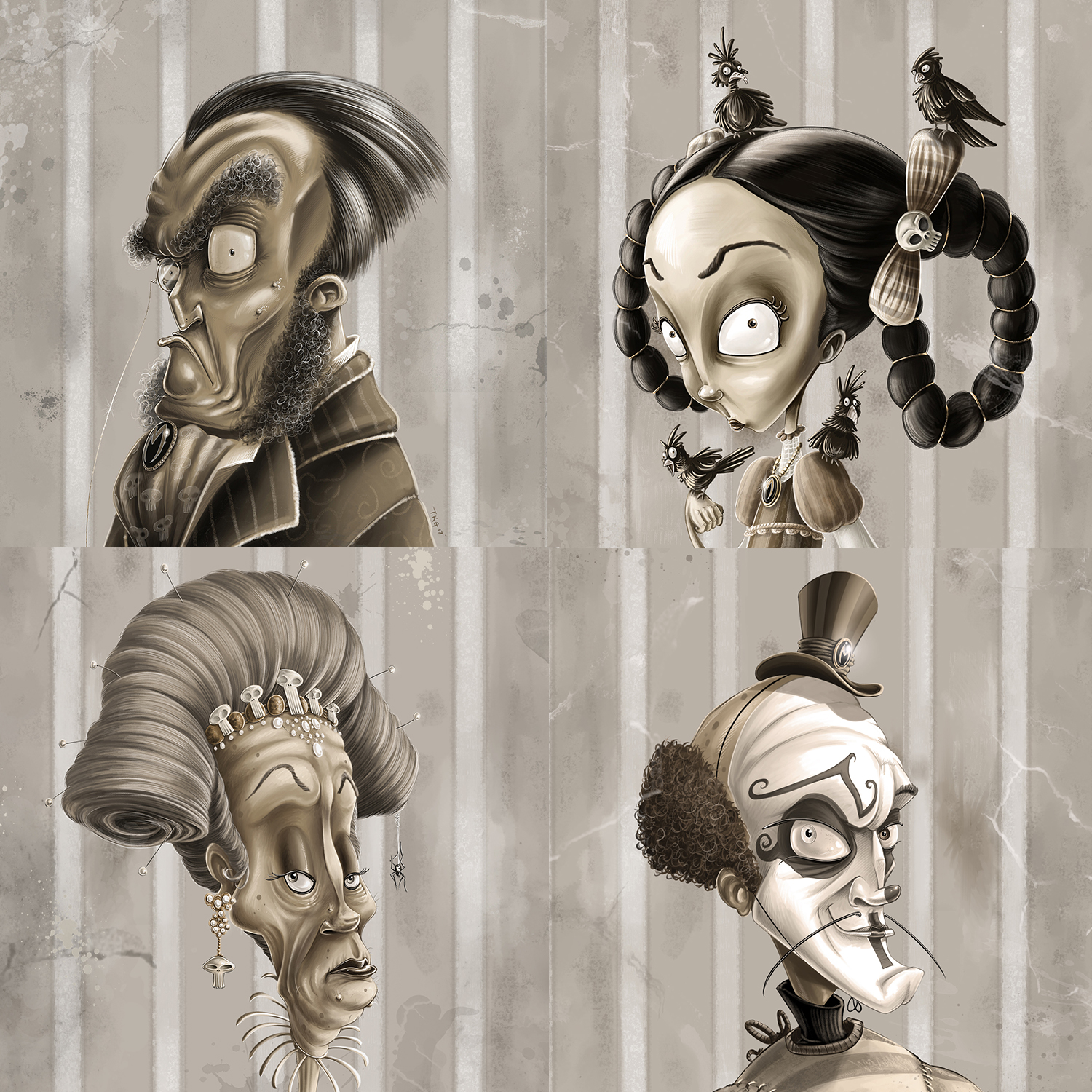 All 4 Macabre McMorbidly family portraits in Set A.